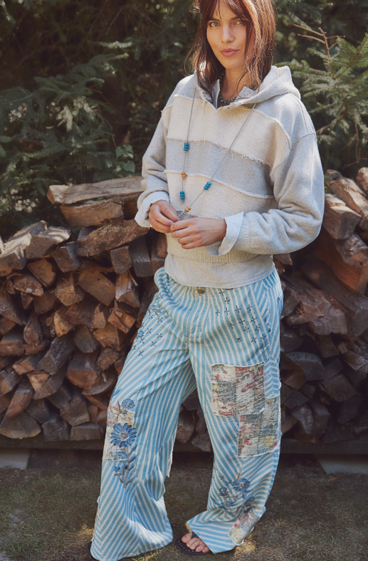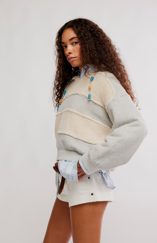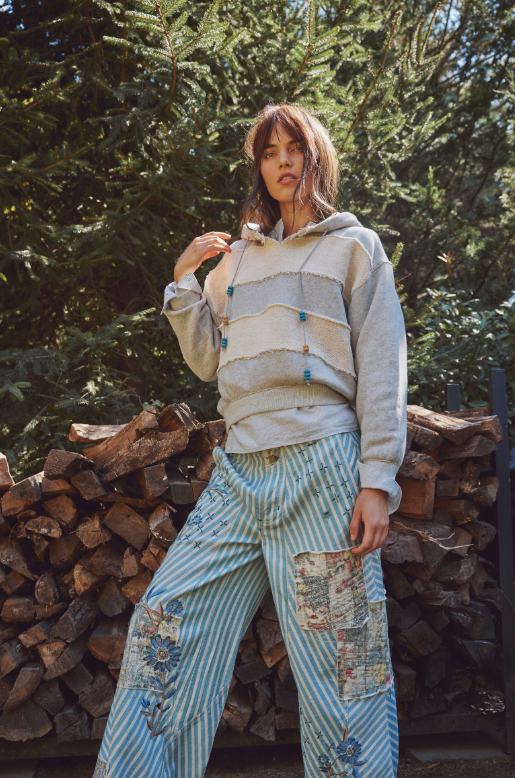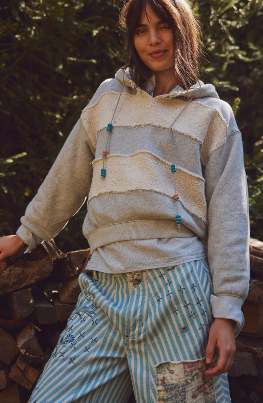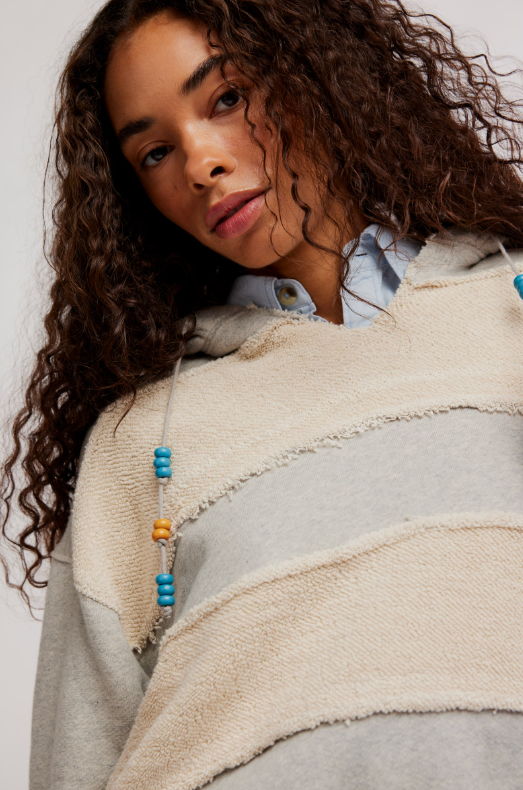 Quintessential Free People, the Camp Crush hoodie is slouchy, oversized and has insane details. Swoon over the beaded drawcord, the block stripe and soft feel.