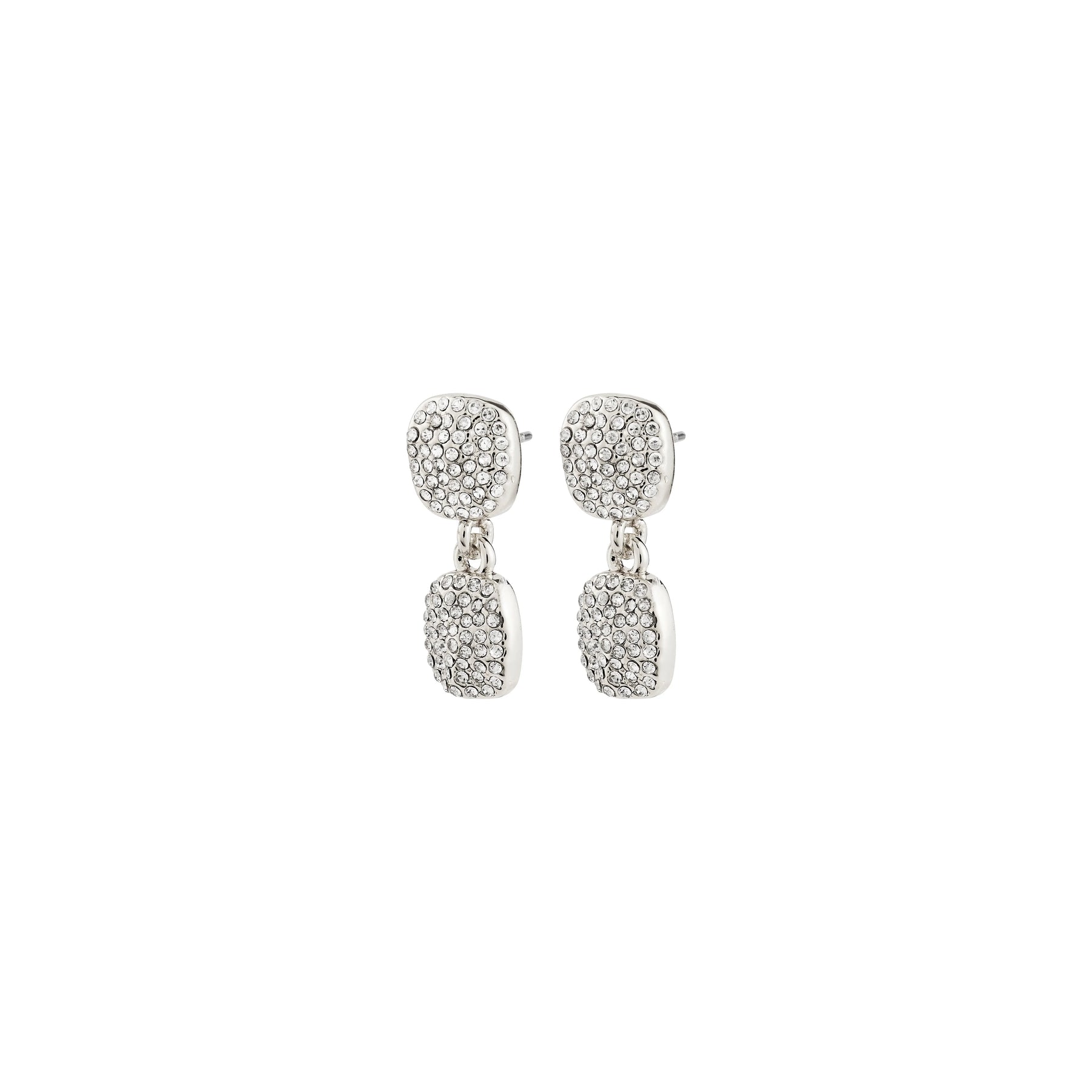 Light up your look! The EMBER earrings from Pilgrim are all about turning up the glow and dialling in the class, featuring a sleek square stud and a swinging drop – both drenched in sparkling Preciosa crystals. These silver-plated stunners will effortlessly become your go-to for everything from pared-back outfits to full-on statement styling. Easy to wear, with quiet luxury vibes and a crisp, clean edge. Slip them on with a low bun, satin shirt, and subtle makeup for that polished clean-girl energy where shine takes centre stage. Crafted from durable, water-resistant materials with 97% recycled content - because every detail matters.