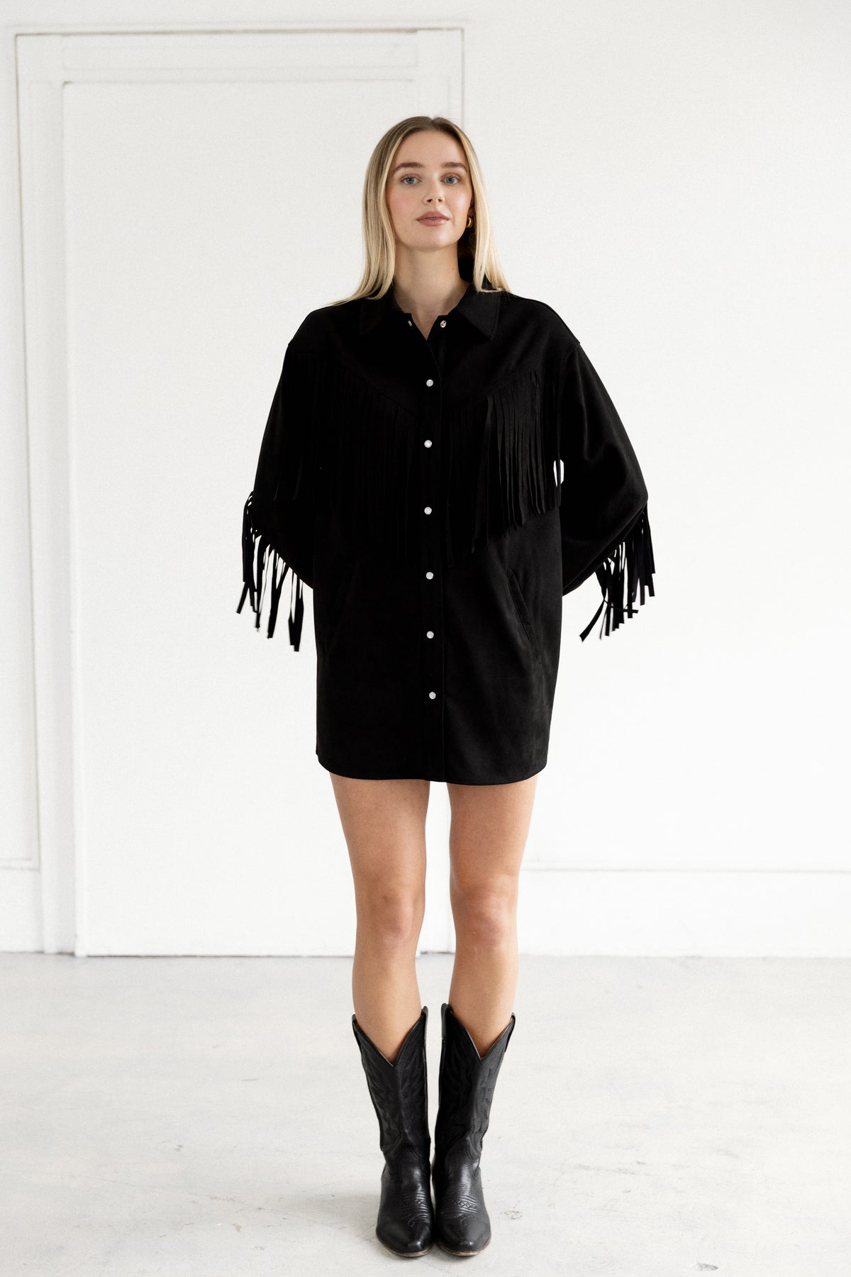 Cowgirl Chic - the fringe jacket from the Paris Texas collection has refined style and casual appeal. Wear alone as a top with a skirt or shorts. Or as a jacket over a basic tee and jeans. However you choose to embrace this beauty, you will move with confidence and a go get it attitude.