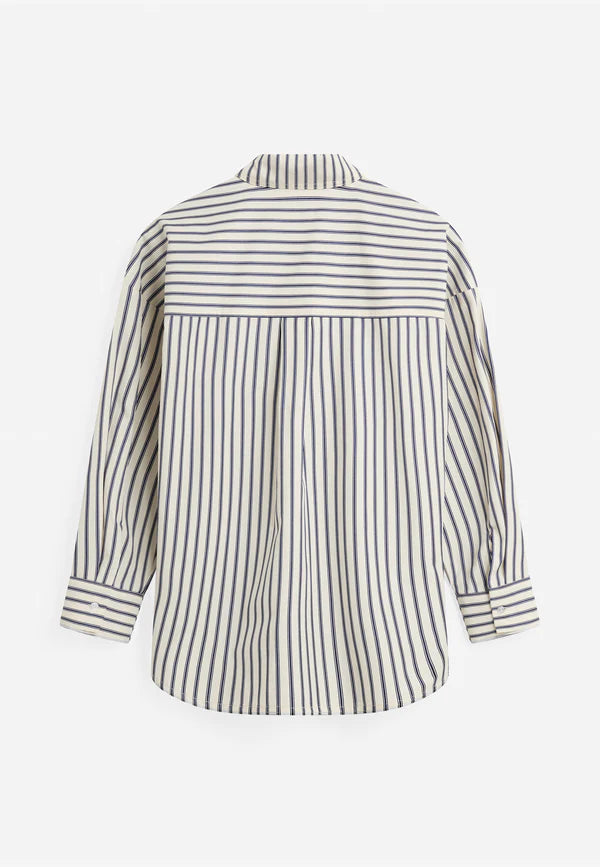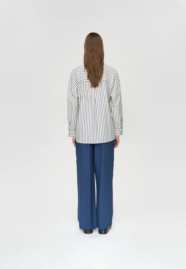 The Marley is a loose fitting men's inspired shirt. Waist adjustment detail adds a feminine touch to this classic striped shirt.
