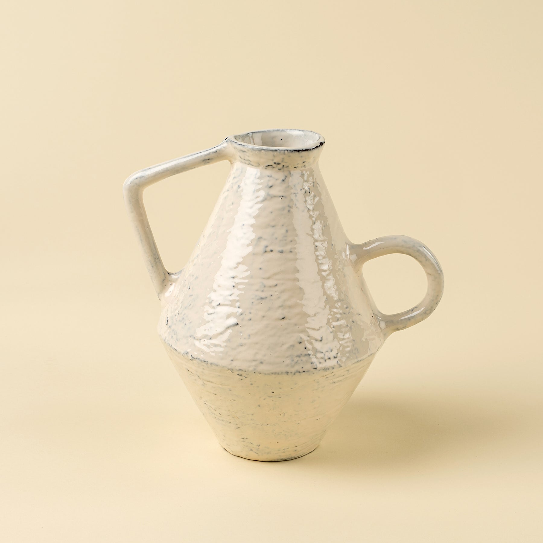 Elevate your space with the sculptural geometry of the Savoy Vase. Crafted from cast aluminum and finished with a glossy cream glaze, this decorative vase blends artistic form with timeless materials. Its angular silhouette and asymmetrical handles make it a standout accent decor piece, while the subtly distressed finish allows the darker underlayer to show through, adding depth and patina.