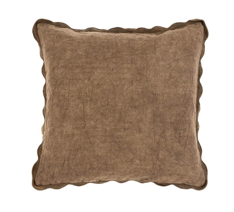 Elevate your space with the 20x20 Scalloped Edge Pillow in Charcoal, a perfect balance of relaxed sophistication and feminine charm. Crafted from a linen-cotton blend, this pillow features delicate cotton scalloped edging that adds a subtle, decorative detail. Designed with a perfectly worn look, it brings warmth and texture to any setting. Whether styled as an accent pillow on a bed, sofa, or chair, its timeless appeal makes it a versatile addition to any decor.
