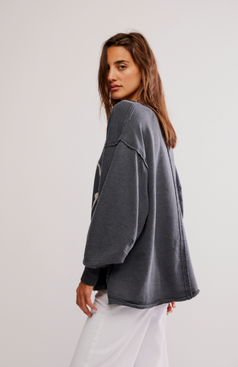 This staple pullover from our We The Free collection is featured in a soft cotton fabrication and oversized fit with a deep V-neckline and a statement front graphic.