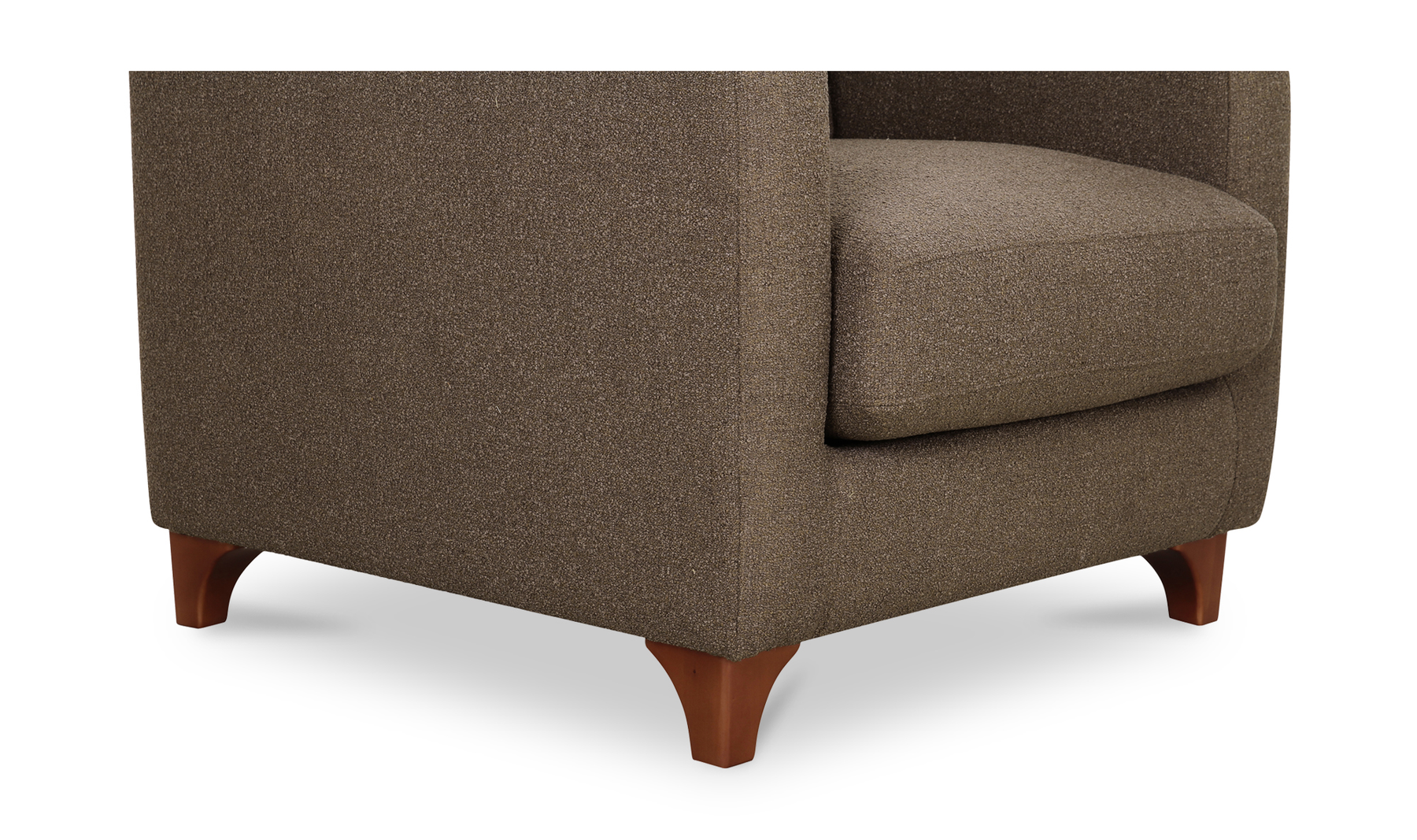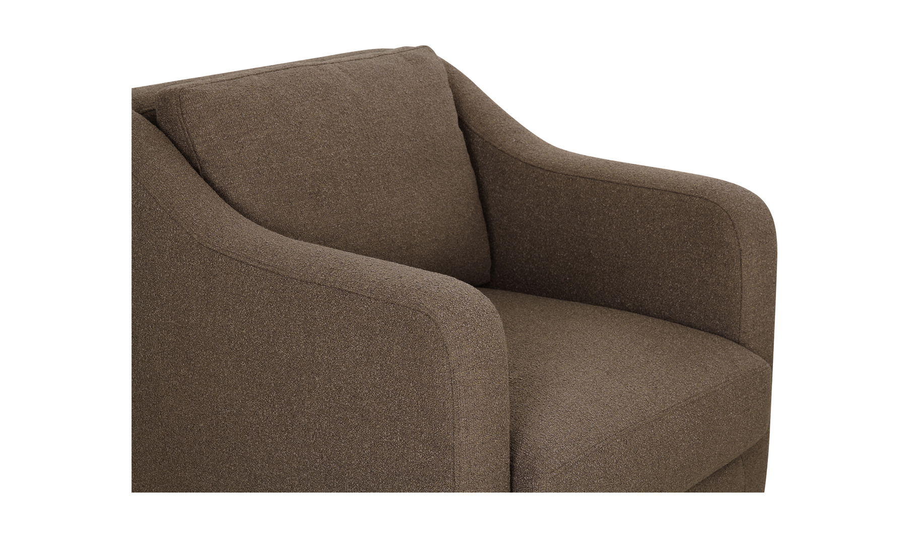 Inspired by traditional and transitional influences, the Hewitt accent chair offers timeless simplicity and commercial appeal with highly textured micro boucle upholstery. It has removable and reversible cushions for versatile comfort, a gentle slope in the arms and high back for an inviting posture, and curved solid birch legs that add elegance to the structure.